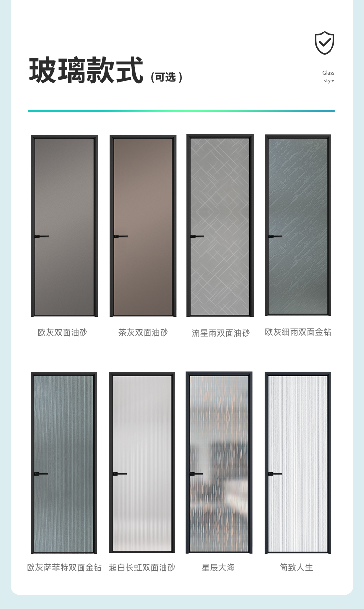 超安全預防夾手設計,避免夾手傷害 超安全護角,減輕踢腳傷害 隱藏鎖片,減少碰撞劃傷 隱藏式天地合頁,承重更強,避免掉扇傷人; 超國標,超安全3.0mm壁厚 超安全100%強化玻璃,防止破碎劃傷 極窄,極簡,極美,可做典雅黑、星空灰、象牙白、摩卡 多種工藝玻璃可選,滿足您不同的風格需求