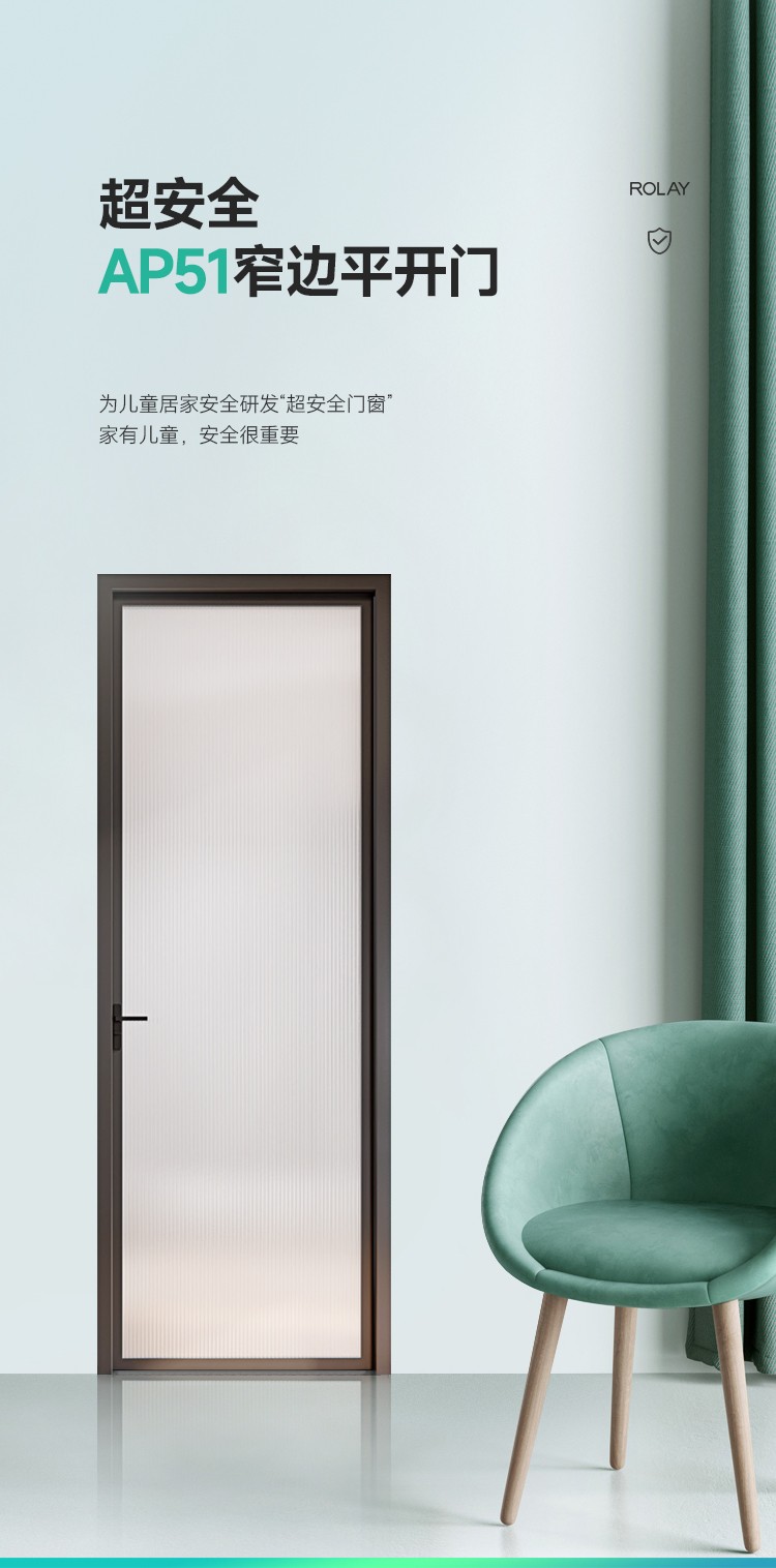 超安全預防夾手設計,兒童使用更安全; 超安全護角,減輕踢腳傷害; 超安全鋼軸合頁,預防掉扇傷人; 超安全100%強化玻璃,預防玻璃破碎劃傷; 磁吸鎖芯,減少碰撞劃傷; 多種工藝玻璃可選,滿足您不同的風格需求。