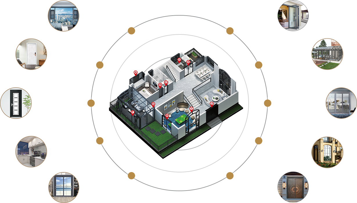 6大設計理念 : 安全、隔音、防水、節能、健康 、智能, 致力于打造高性能門窗。