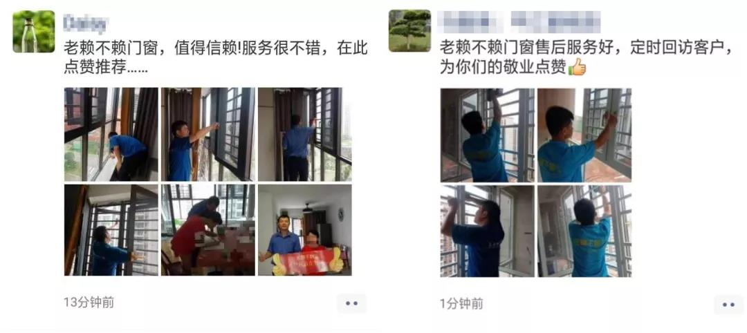 回訪小組在認真細致地清潔、檢修門窗的同時,并系統地向用戶講解了門窗的使用和保養小常識;用戶們對老賴不賴人專業、用心的服務感到非常的滿意,紛紛為老賴不賴點贊。